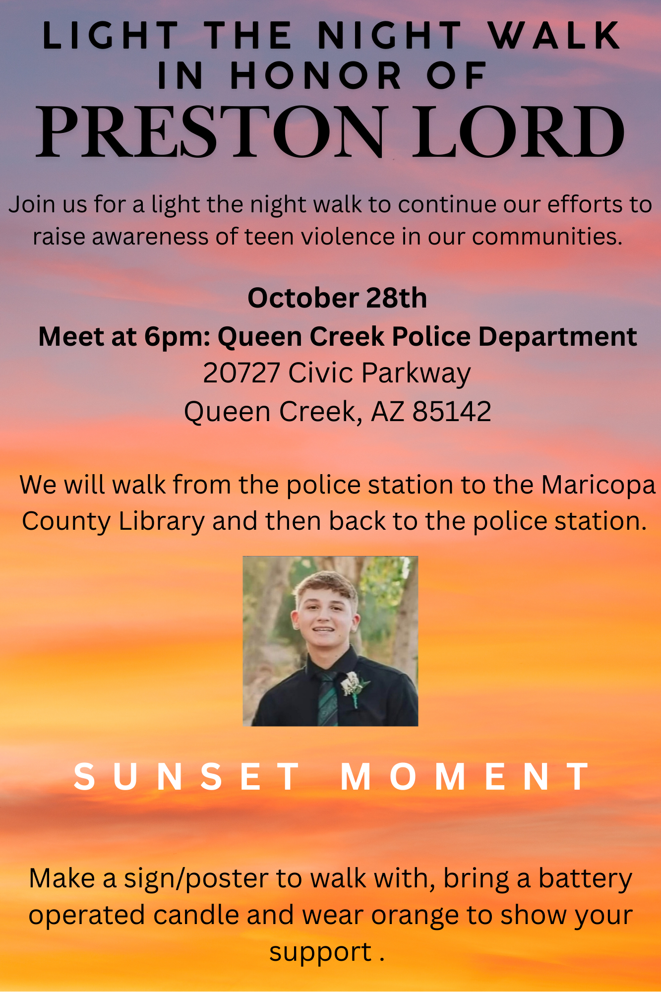 Preston Lord was at a Halloween party in suburban Queen Creek, Arizona, on October 28, 2023. As he tried to leave the party, he was blitzed-styled attacked by a gang of teenagers known in the community as the “Gilbert Goons.” Preston died due to severe traumatic brain injuries he suffered at the hands of his attackers. His death shed light on teen violence in the East Valley and brought the community together to work towards positive changes.